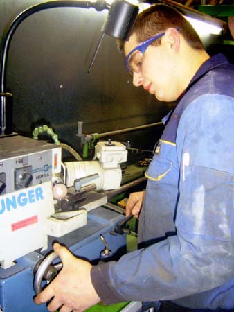 • Bauteile, Baugruppen und Komponenten herstellen und bearbeiten, z. B. durch Feilen, Sägen, Bohren, Schleifen, Gewindeschneiden, Meißeln, Schmieden, Drehen, Fräsen, Polieren