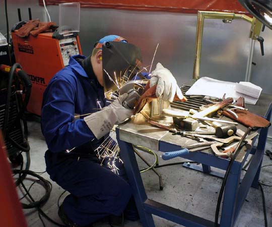 Ob Rohre, Bleche, Baustahl, Aluminium oder Chrom-Nickelstahl: Universalschweißer*innen verbinden sie zu Maschinen, Fahrzeugteilen, Kesseln, Geländer und Gerüsten und noch zu vielem mehr. Je nach Werkstoff und Erzeugnis wählen sie die geeigneten Schweißwerkzeuge und Schweißtechnik aus, wie z. B. Gas-, Elektro- und Schutzgasschweißen, Brennschneidverfahren, Hartlöten oder Kunststoffschweißen, und hantieren mit Handschweißgeräten und Schweißautomaten. Universalschweißer*innen arbeiten in Werkstätten und Werkhallen von Industrie und Gewerbebetrieben der Metallverarbeitung im Team mit Berufskolleg*innen, Vorgesetzten und mit verschiedenen Fach- und Hilfskräften zusammen.